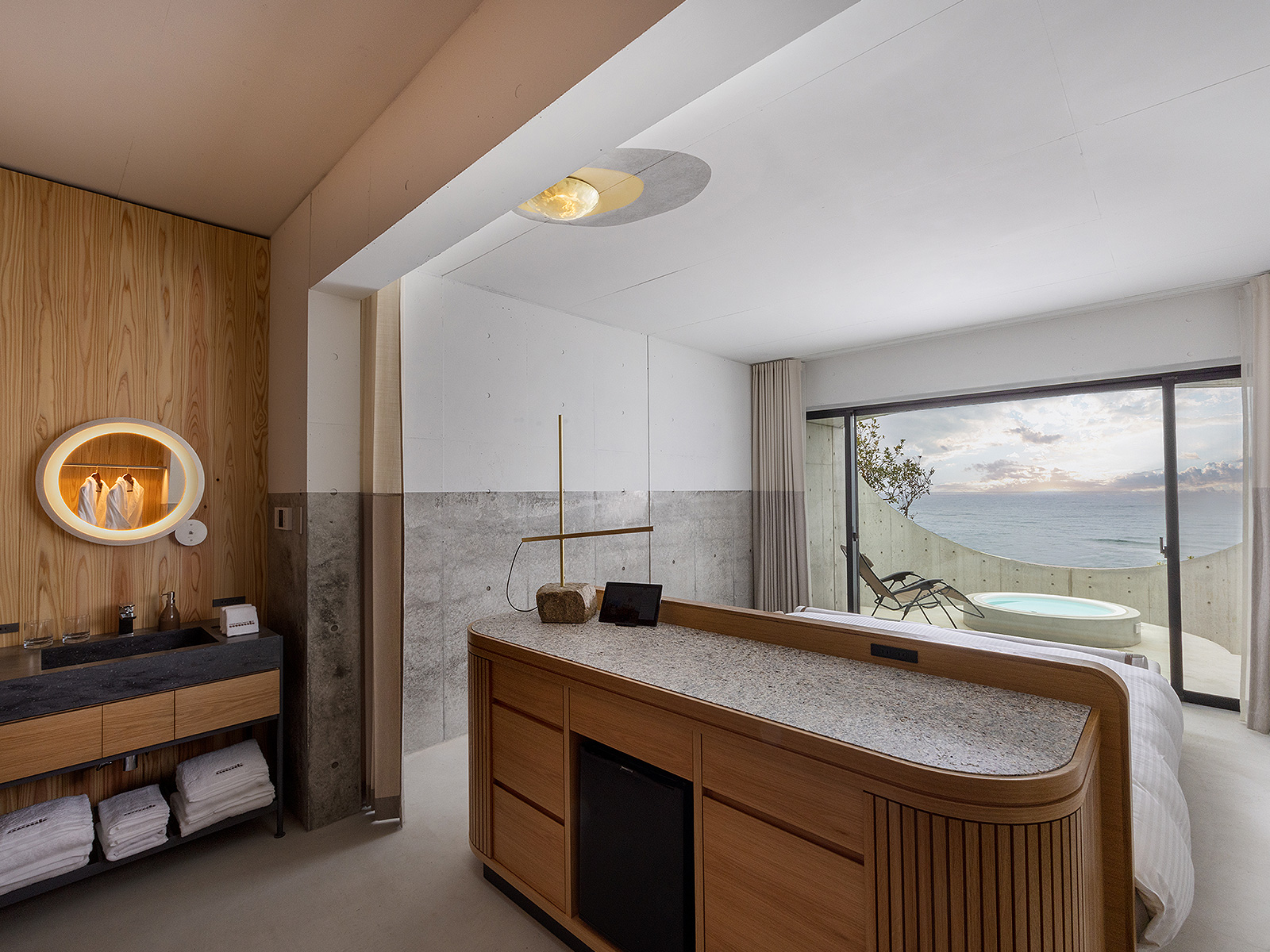 雄大なサンセットを心ゆくまで楽しむためにジャグジー付きの広々としたテラスを配し、 空と海を静かに見つめながら時間を刻む、特別な滞在を。