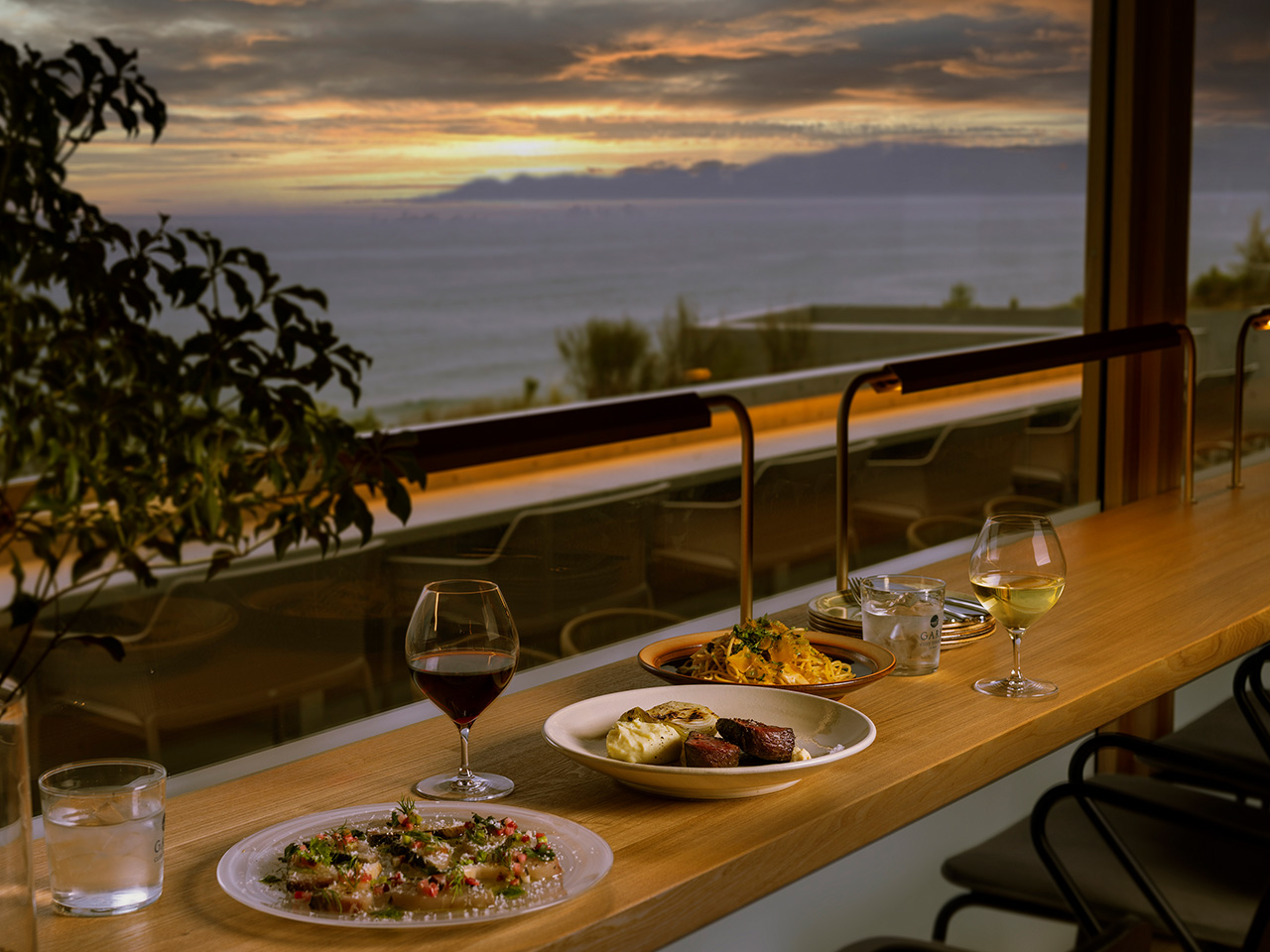 空を染めてゆく夕日の眺望とともに唯一無二の「食」の時間をお愉しみください。