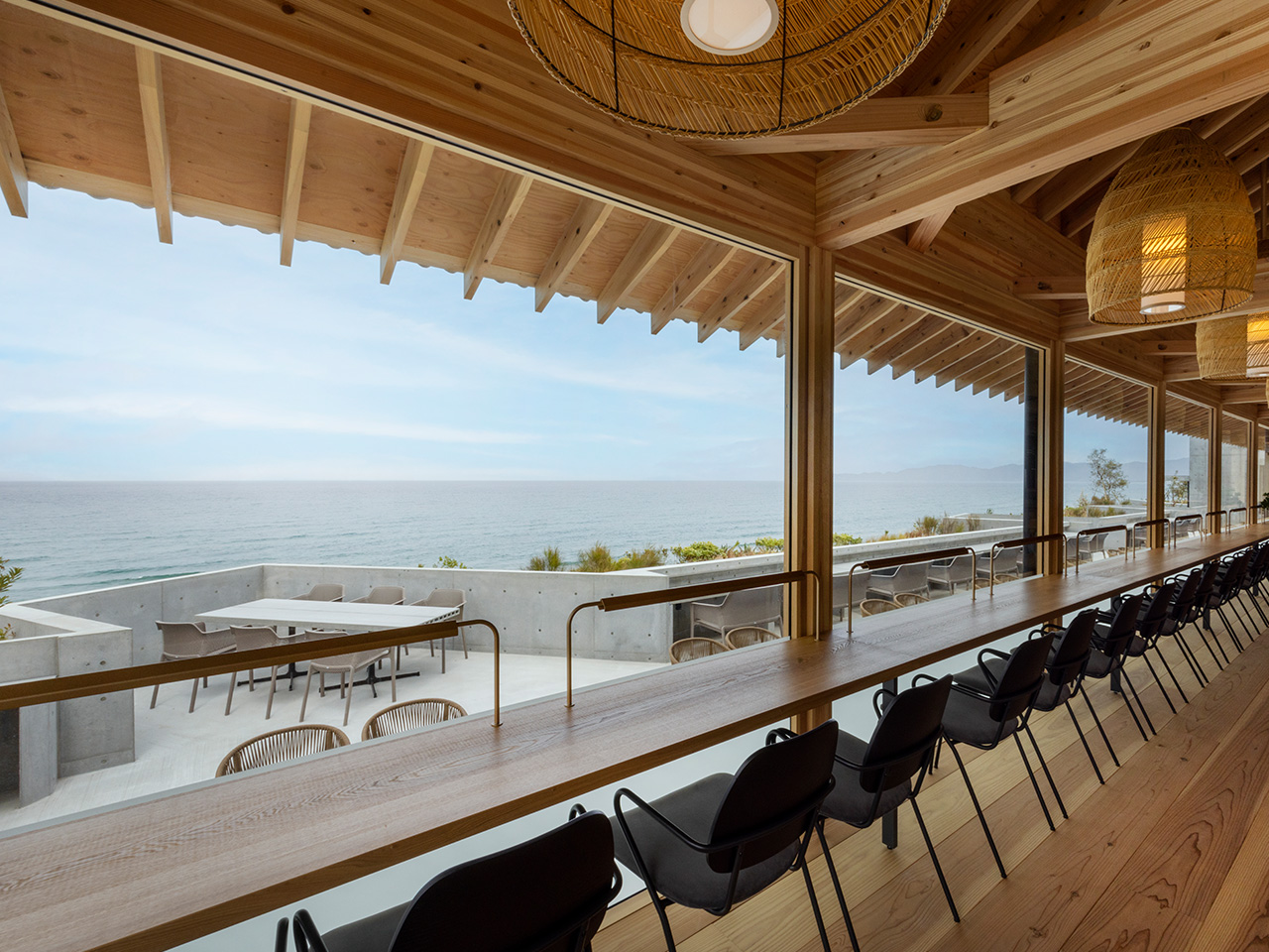 この土地の環境と調和するミニマルなデザイン、プリミティブな自然素材を使用し、